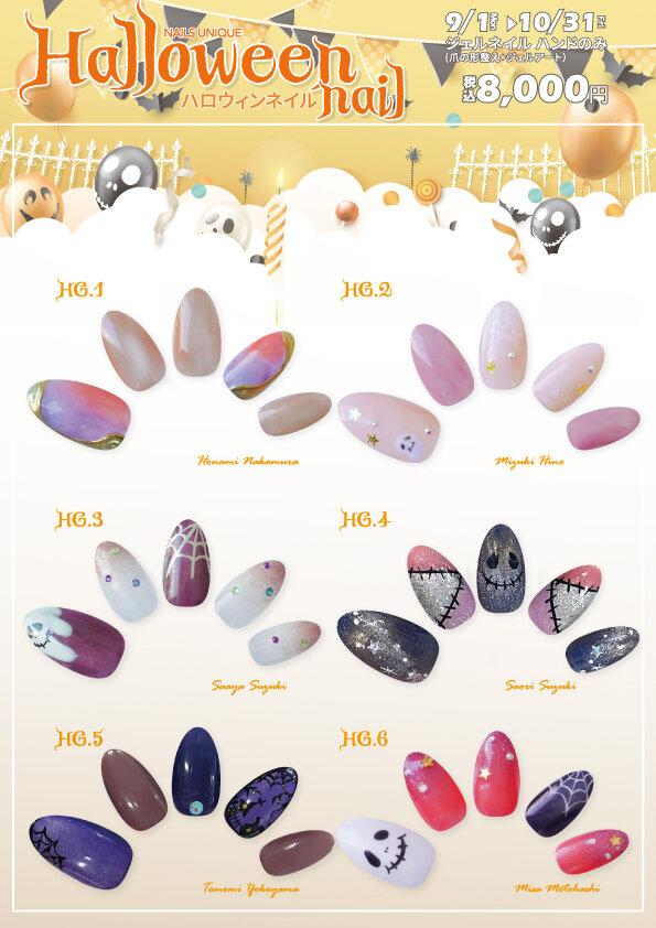 ポップでキュートなゴーストデザインや、ダークでミステリアスなスパイダーネイルまで遊び心ある全6デザイン。